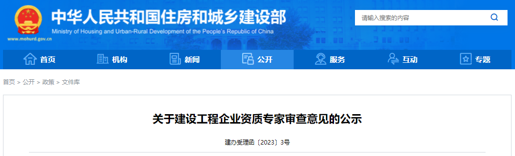 住建部官網(wǎng)發(fā)布《關于建設工程企業(yè)資質專家審查意見的公示》建辦受理函〔2023〕3號,本次公示,施工資質157項,同意30項,不同意127項,其中48家申請?zhí)丶壻Y質,均為“不同意”。