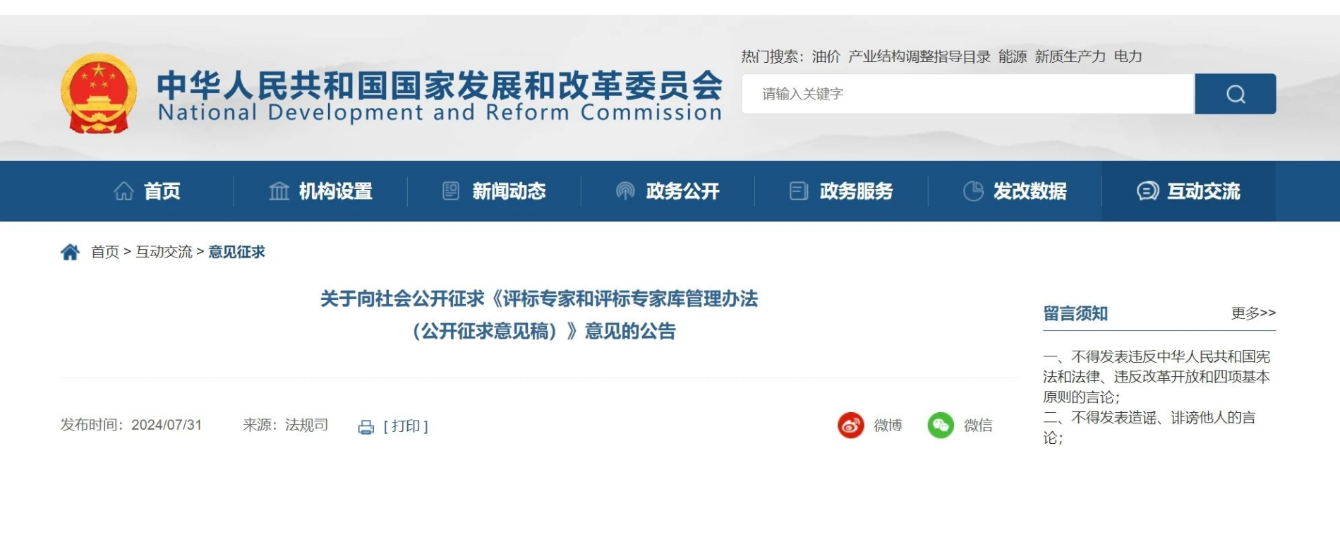 新政 | 國家發(fā)革委:就《評標專家和評標專家?guī)旃芾磙k法》公開征求意見!  關(guān)于向社會公開征求《評標專家和評標專家?guī)旃芾磙k法(公開征求意見稿)》意見的公告