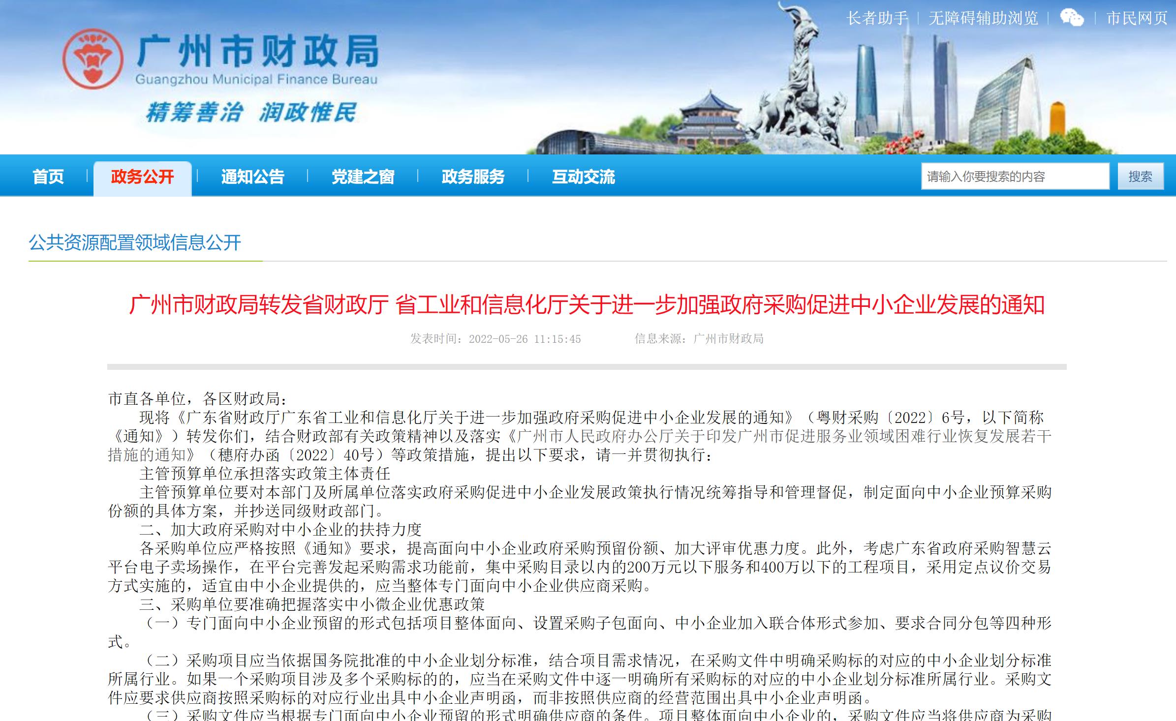日前,廣東省廣州市財(cái)政局印發(fā)《關(guān)于進(jìn)一步加強(qiáng)政府采購(gòu)促進(jìn)中小企業(yè)發(fā)展的通知》明確,充分發(fā)揮政府采購(gòu)政策功能,全方位細(xì)化政策規(guī)定,深入落實(shí)《政府采購(gòu)促進(jìn)中小企業(yè)發(fā)展管理辦法》(以下簡(jiǎn)稱《辦法》)的相關(guān)規(guī)定,加大政府...
