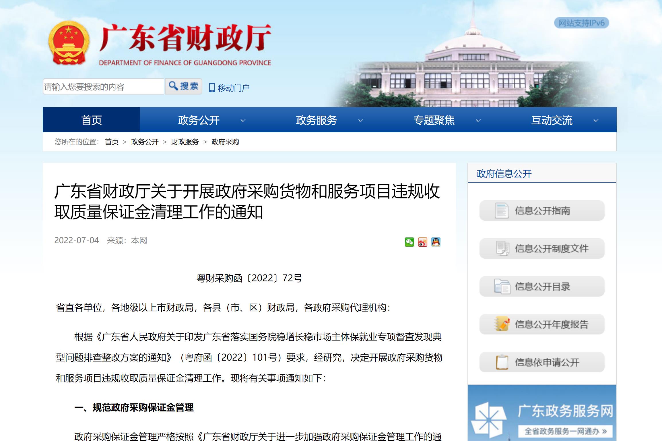 日前,珠海市財(cái)政局發(fā)布《關(guān)于開(kāi)展政府采購(gòu)貨物和服務(wù)項(xiàng)目違規(guī)收取質(zhì)量保證金清理工作的通知》(以下簡(jiǎn)稱《通知》),其中明確,對(duì)2021年以來(lái)政府采購(gòu)貨物和服務(wù)項(xiàng)目違規(guī)收取質(zhì)量保證金問(wèn)題開(kāi)展自查清理。...