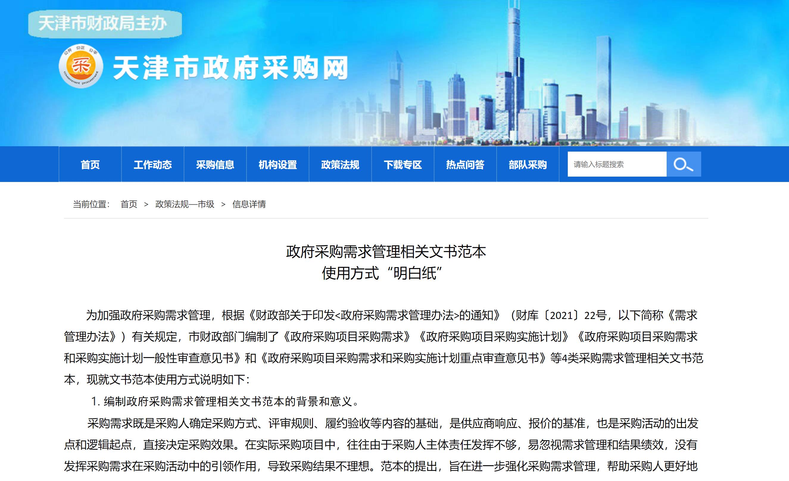 天津印發(fā)政府采購(gòu)需求管理相關(guān)文書(shū)...