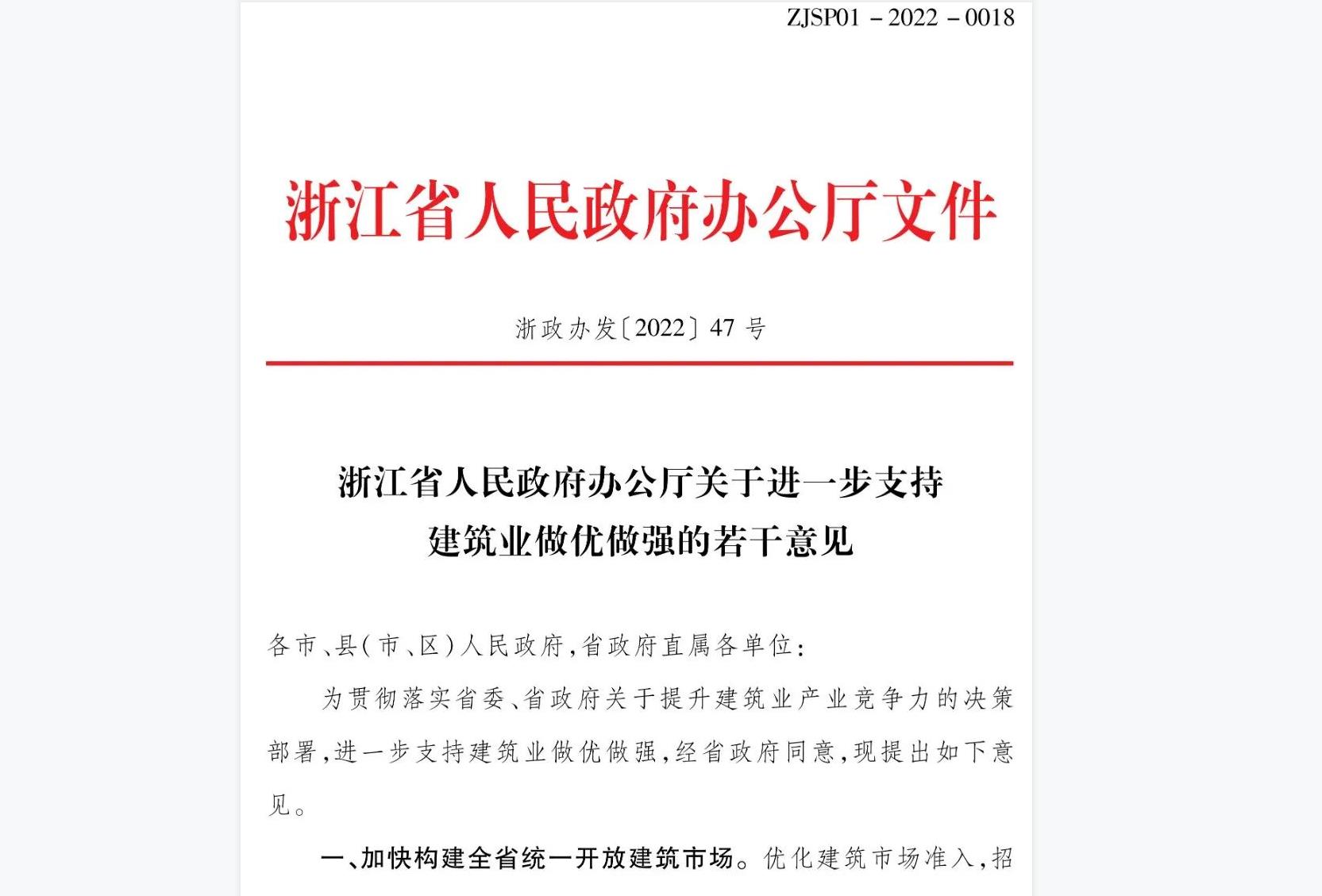 7月20日,浙江省人民政府辦公廳發(fā)布《關(guān)于進(jìn)一步支持建筑業(yè)做優(yōu)做強(qiáng)的若干意見》,《意見》提出:要減輕建筑業(yè)企業(yè)負(fù)擔(dān)。全面推行保證保險(xiǎn)、銀行保函替代現(xiàn)金繳納投標(biāo)、履約、工程質(zhì)量、農(nóng)民工工資等保證金,加快推行電子保...