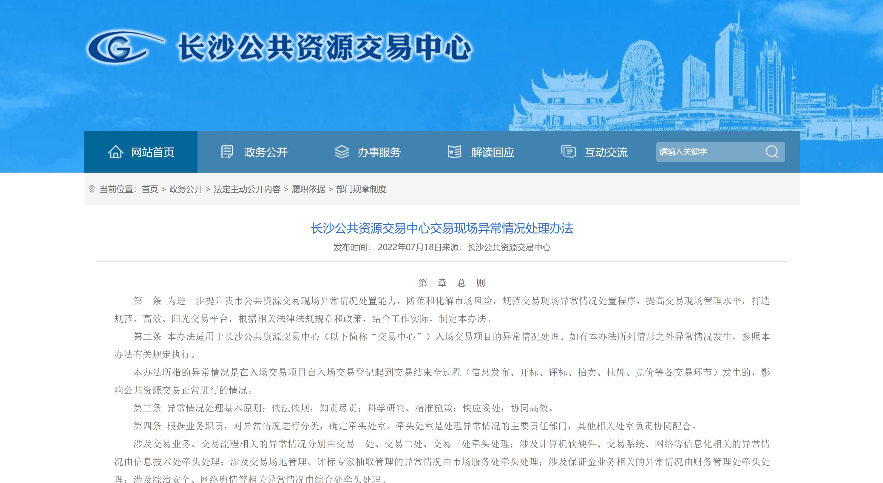 近日,長沙公共資源交易中心出臺(tái)了《交易現(xiàn)場異常情況處理辦法》(以下簡稱《辦法》),對(duì)入場交易項(xiàng)目全過程中發(fā)生的異常情況處理作出規(guī)定。