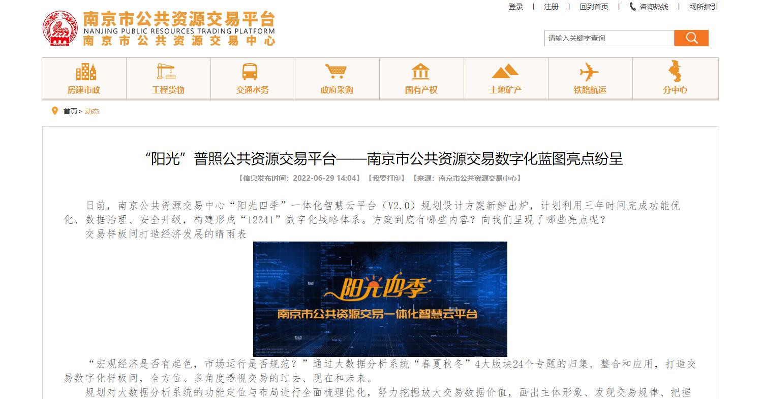 近日,南京市公共資源交易中心“陽光四季”一體化智慧云平臺(V2.0)項目規(guī)劃設(shè)計方案(以下簡稱方案)出爐,為推動南京市公共資源交易領(lǐng)域數(shù)字化轉(zhuǎn)型升級,實現(xiàn)公共資源交易“一網(wǎng)統(tǒng)管”擘畫了藍(lán)圖路線。...