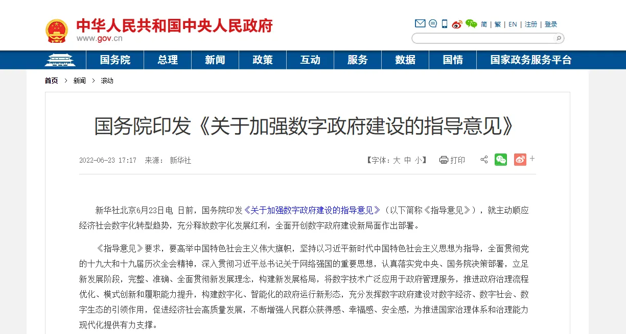 國務(wù)院丨發(fā)布關(guān)于加強(qiáng)數(shù)字政府建設(shè)...