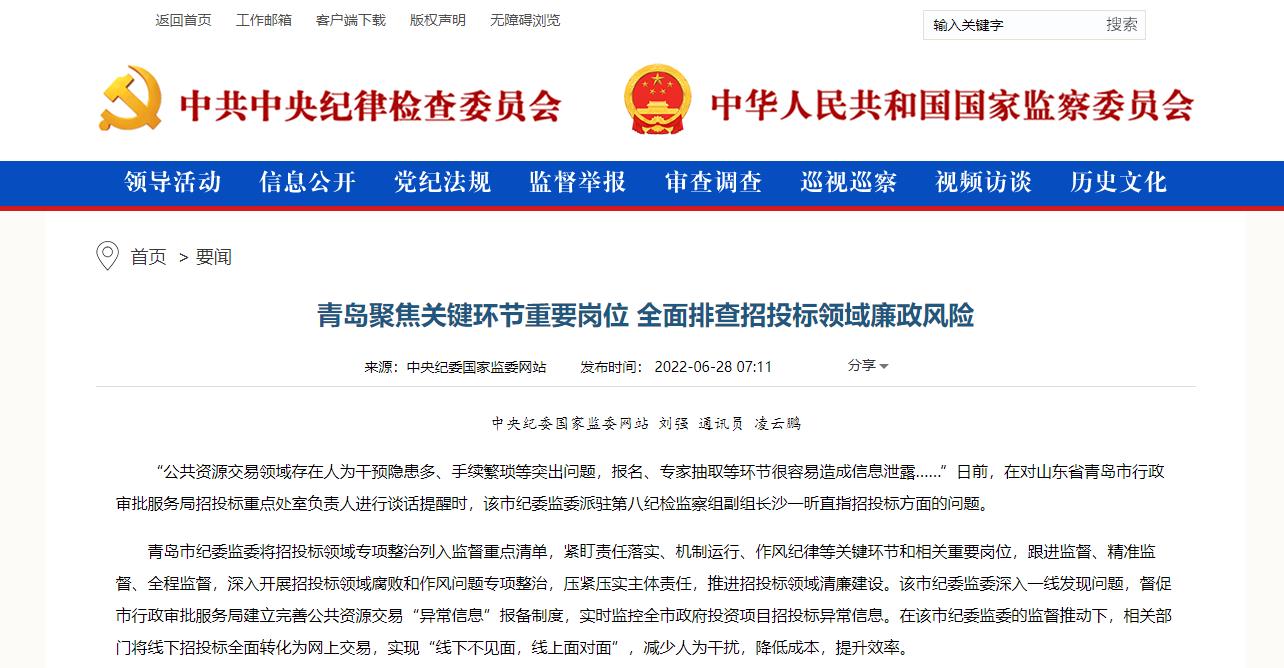 “公共資源交易領(lǐng)域存在人為干預(yù)隱患多、手續(xù)繁瑣等突出問題,報(bào)名、專家抽取等環(huán)節(jié)很容易造成信息泄露……”日前,在對山東省青島市行政審批服務(wù)局招投標(biāo)重點(diǎn)處室負(fù)責(zé)人進(jìn)行談話提醒時(shí),該市紀(jì)委監(jiān)委派駐第八紀(jì)檢監(jiān)察組副...