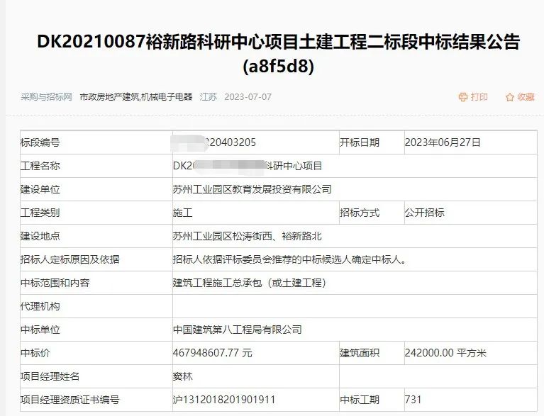 目前,項目已完成招標(biāo),并于7月7日發(fā)布了相應(yīng)的中標(biāo)結(jié)果公告。