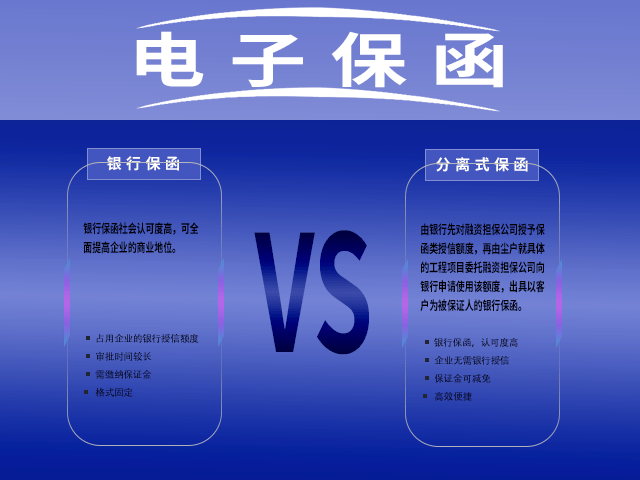電子保函只是一種保函的載體,根據(jù)現(xiàn)在的《招投標法》對于工程領(lǐng)域的保函要推廣使用電子保函,節(jié)約保證金。